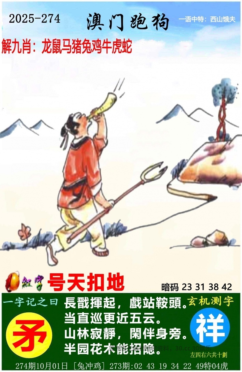 ![]() 金銀財足:學海無涯,唯勤是岸,謙恭學習自得樂;他日有成,稱霸稱王,前途無限發亮光。玄機測字:《抽》 解:稱霸稱王,大肖:牛虎马羊狗猪。 综合取肖:牛虎马羊狗猪 ![]() |